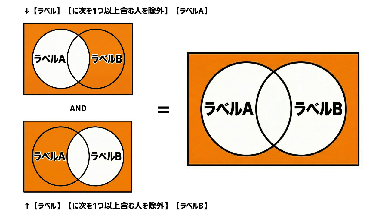 という条件の場合、「ラベルAとラベルBのどちらも付与されている方以外」が