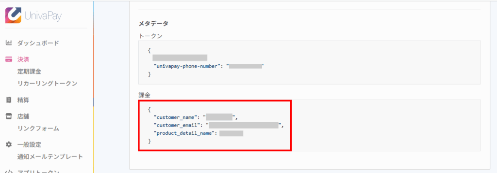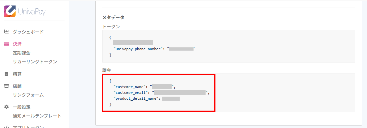 ※UnivaPayでは、テスト決済時の決済履歴やリカーリングトークン、定期課金は